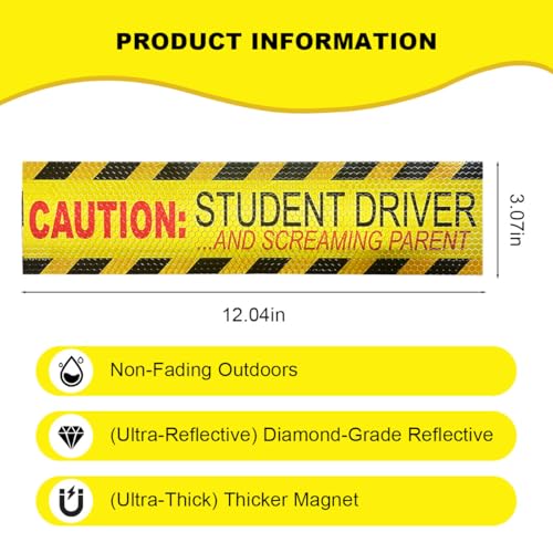 Click for More Images ?Powerful Magnets?Designed for maximum visibility, this student driver magnet features a reflective surface that alerts surrounding drivers, thus improving nighttime driving. The powerful magnetic backing adheres to any...