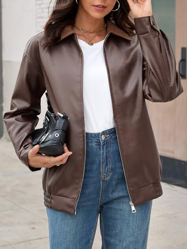 Click for More Images Fabric:68% Polyurethane+27% Polyester+5% Cotton,High quality faux LeatherDesign:Oversized,Plus Sized,Long Sleeve,Faux Leather Jackets,Zip Up Motorcycle Jacket,Fall Outfits,Y2k Fashion,Trendy Clothes,Punk Coat,Moto Biker...