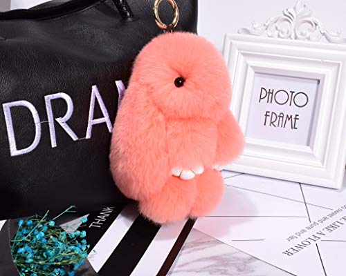 Click for More Images Material:100% Genuine Rabbit Fur and alloy keyring;Size:5.7 inch x 4.3 inch.Perfect handmade gift,super soft and cute,it can be used as bag charms for women,it is also can be hanging as a pendant in car.It paws and two legs...