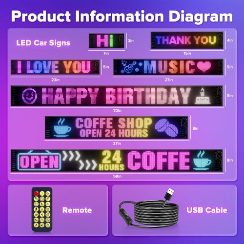 Click for More Images Personalized Message on the Go:Display your messages in a vivid and engaging way with this programmable LED car sign. The content is sharp, colors are vibrant, and multiple display modes make every message stand out. Powered...