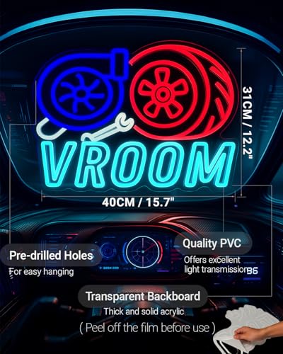 Click for More Images ?Bold Design for Real Car Guys?Turn any wall into a tribute to horsepower. This VROOM neon sign features a turbocharger, racing tire, and wrench icon—all blazing in crisp LED glow. Perfect for gearheads, garage warriors,...