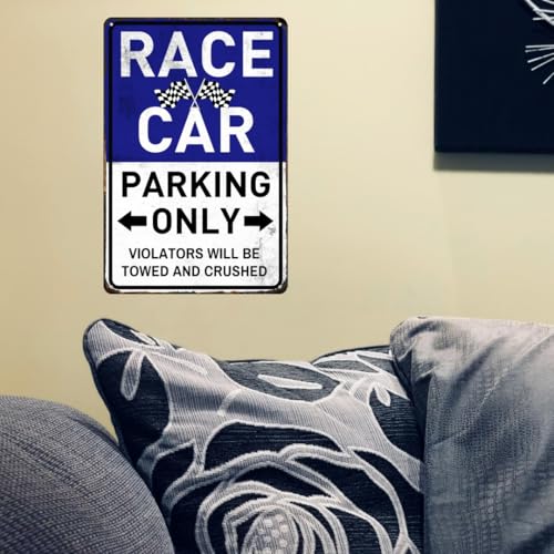 Click for More Images Vintage Race Car Design – Bold “Race Car Parking Only” message with distressed finish adds retro charm to boys’ bedrooms, garages, or racing-themed roomsDurable 8x12 Tin Sign – Crafted from premium metal, this...