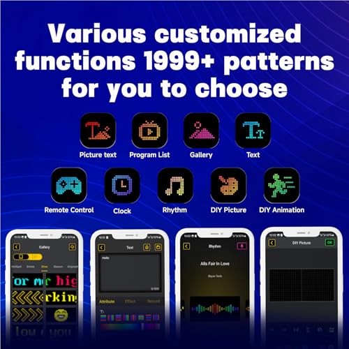 Click for More Images Smart App Control - This Bluetooth LED display is app-controlled, battery-free, and eco-friendly. The app includes a variety of fun patterns and animations. Our scrolling LED sign supports multiple formats and smart...