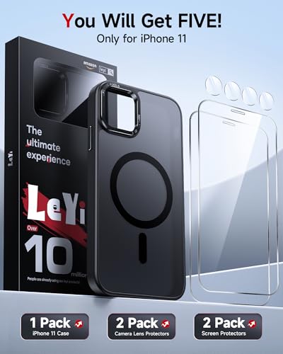 Click for More Images ?5-in-1 Full-Armor Defense Kit for iPhone 11?Magnetic iPhone 11case black absorbs shock from daily drops, 2X 9H screen protector defends against scratches and cracks, and 2X iPhone 11 camera covers protect the lens from...