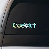 Click for More Images COEXIST LGBT LIPS BUMPER-STICKER . . . Love is Love Rainbow Premium Vinyl Decal 3 x 3" Circle | Car Bumper Auto Window Peace Equality Moon Star Cross Religion Yin-Yang Gay Pride Month Sign + Better Than MagnetsCOEXIST in...