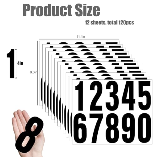 Click for More Images 4 Inch Large Size: With clear and bold 4-inch mailbox numbers, these mailbox numbers are easy to read from a distance, perfect for address signs and house numbers120 Numbers on12 Sheets: Each set includes 12 sheets total of...