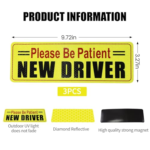 Click for More Images ?Reliable Quality?: Made of high quality soft magnetic material, our student driver safety sign can be firmly attached to the surface of the car. Rain, sandstorms and car washing won't make it come off easily, and the color...