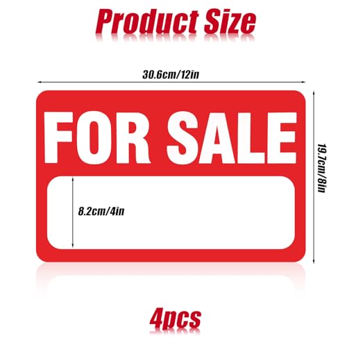 Home » For Sale » 4 Pack For Sale Sign Car Sticker 12″ x 8″ Self-Adhesive Vinyl for Sale Sign Decal Plastic Self Adhesive Stickers Garage Waterproof Signage for Garages Vehicles Boats Houses Business Advertising