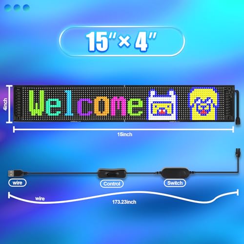 Foldable LED Sign for Car – 15″x4″ Bluetooth Connect App Control, Custom Text Pattern Animation Programmable LED Sign for Car Bar Interior Decoration