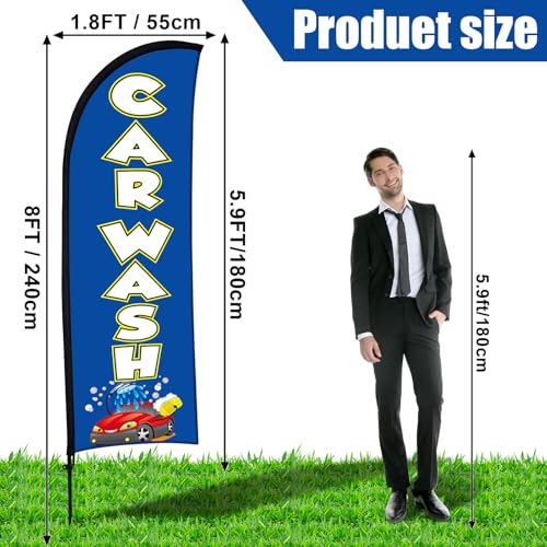 Increase Visibility and Visits: the car wash feather flagpole kit has a 8ft/240cm feather flag, made of polyester fabric, designed to increase visibility and attract attention, increasing foot traffic to your business or event